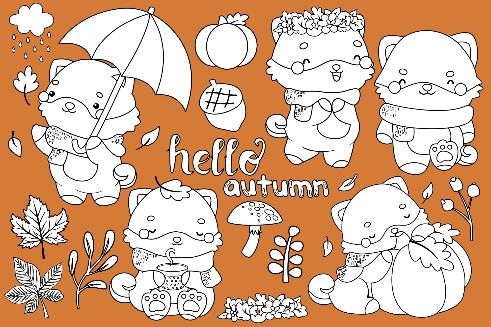 Cute Dog in Autumn Black and White Coloring Clipart