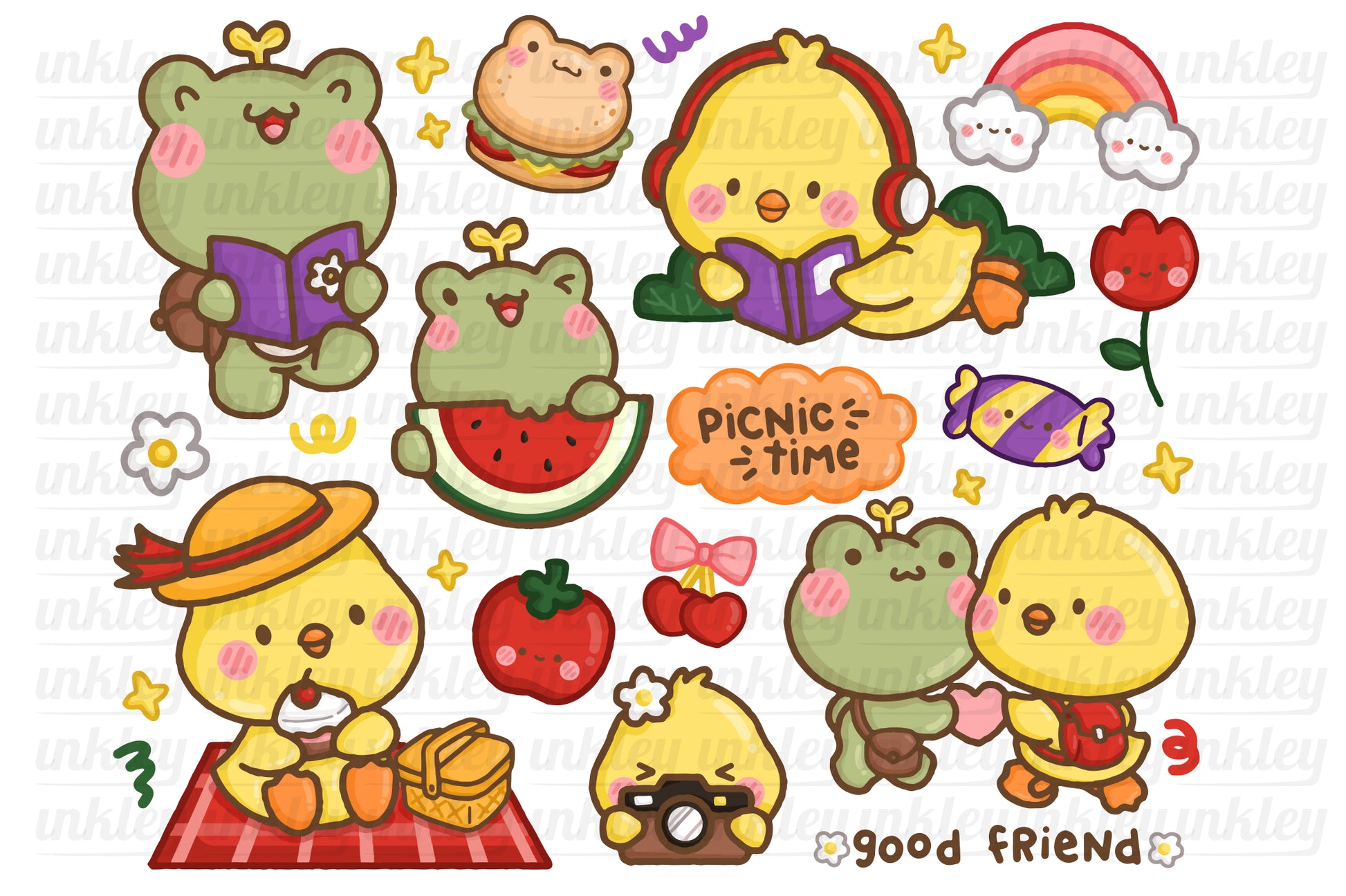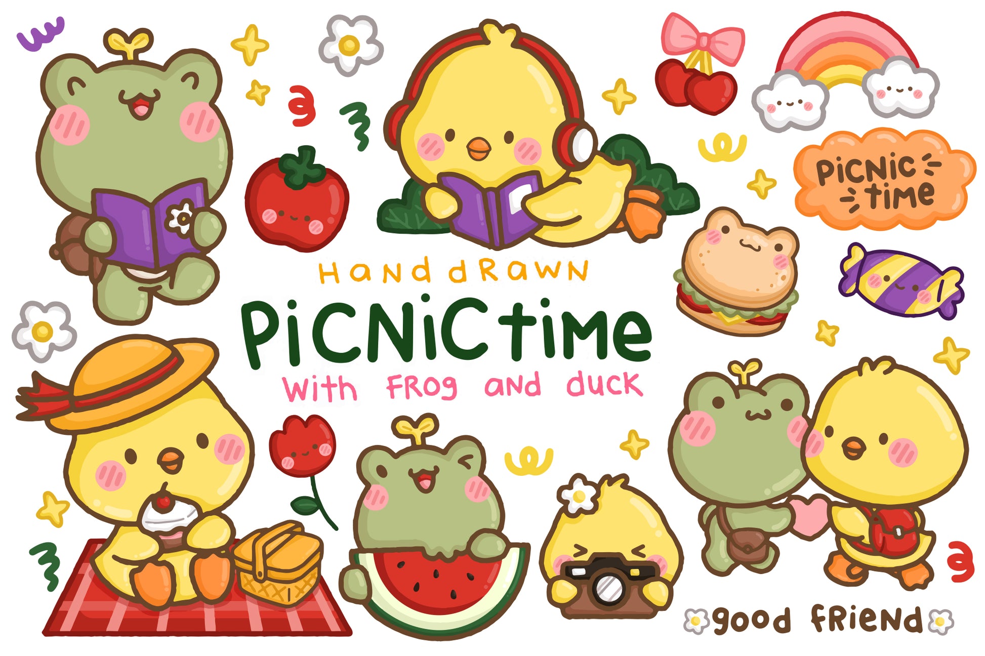 Hand Drawn Frog and Duck Picnic Clipart