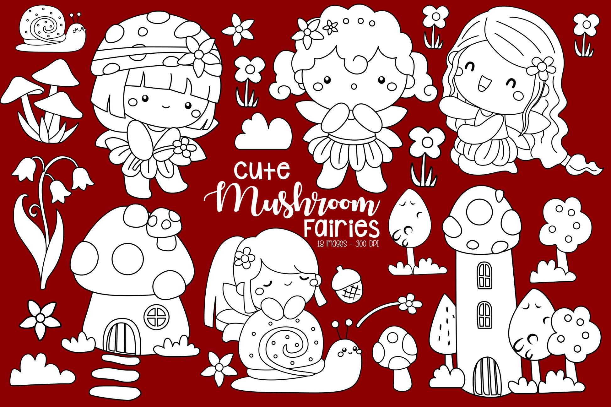 Mushroom Fairy Clipart - Cute Fairies Mushroom Coloring