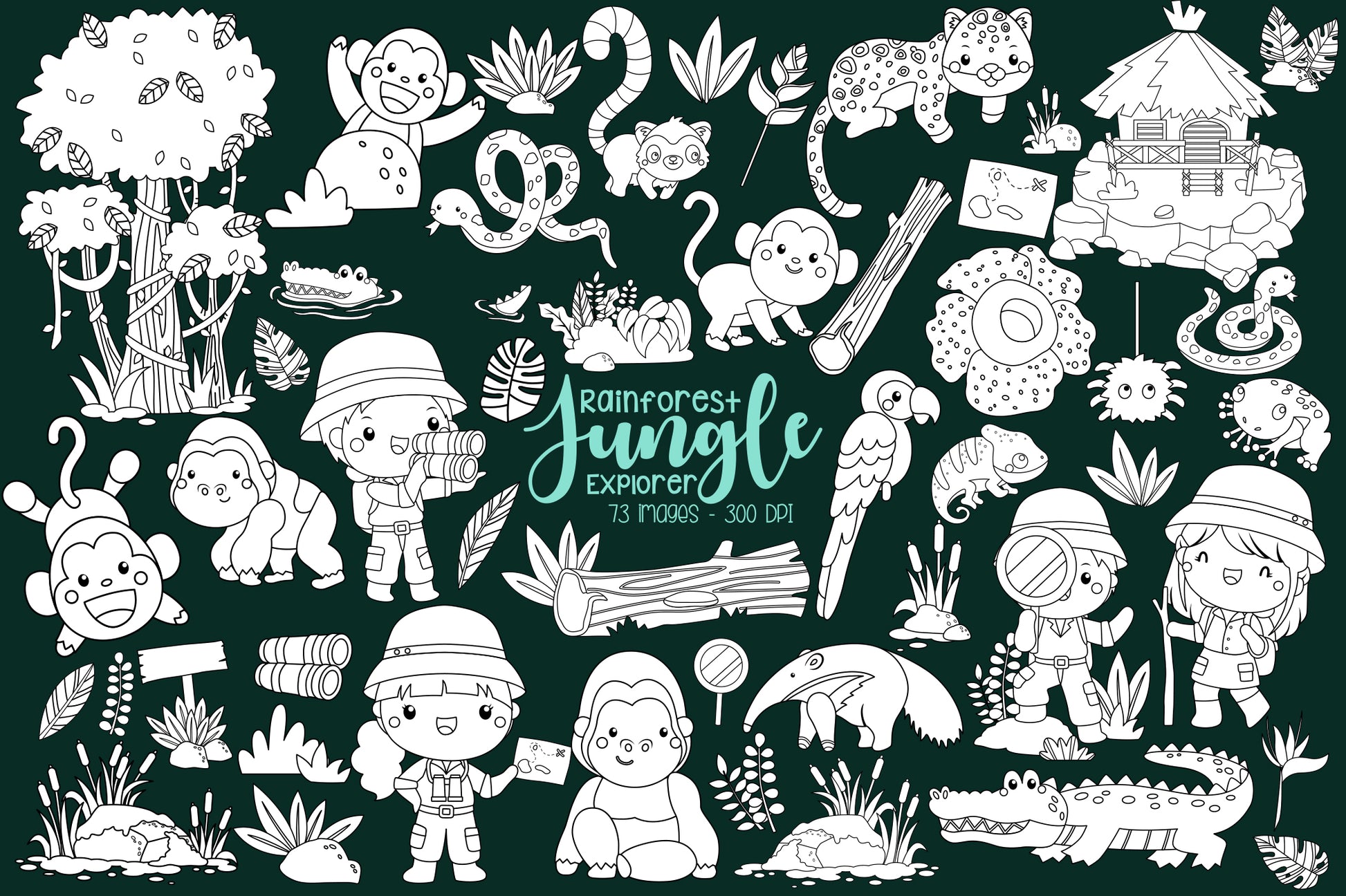Rainforest Jungle Clipart - Explorer Clip Art Coloring