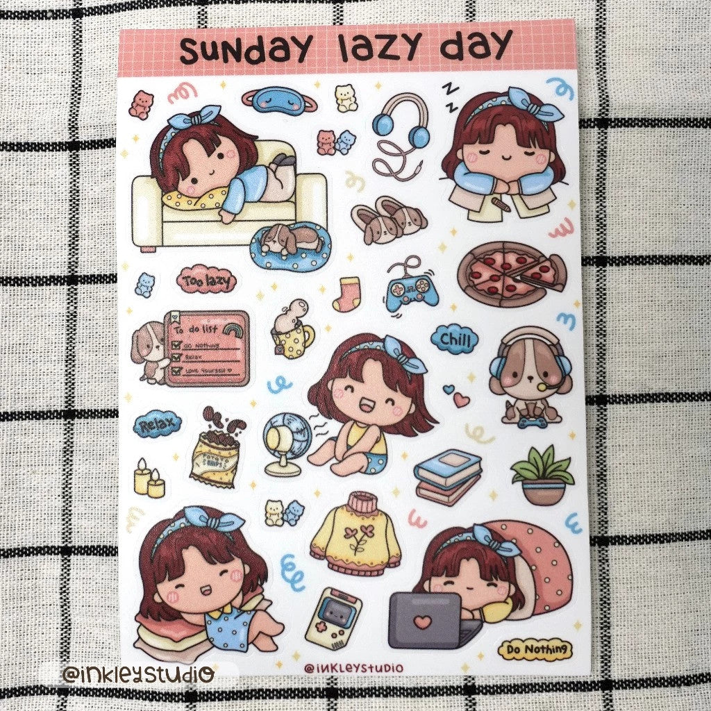 Sunday Lazy Day Sticker Sheet | Waterproof | Aesthetic Sticker | Sticker Sheet Pack | Planner Sticker
