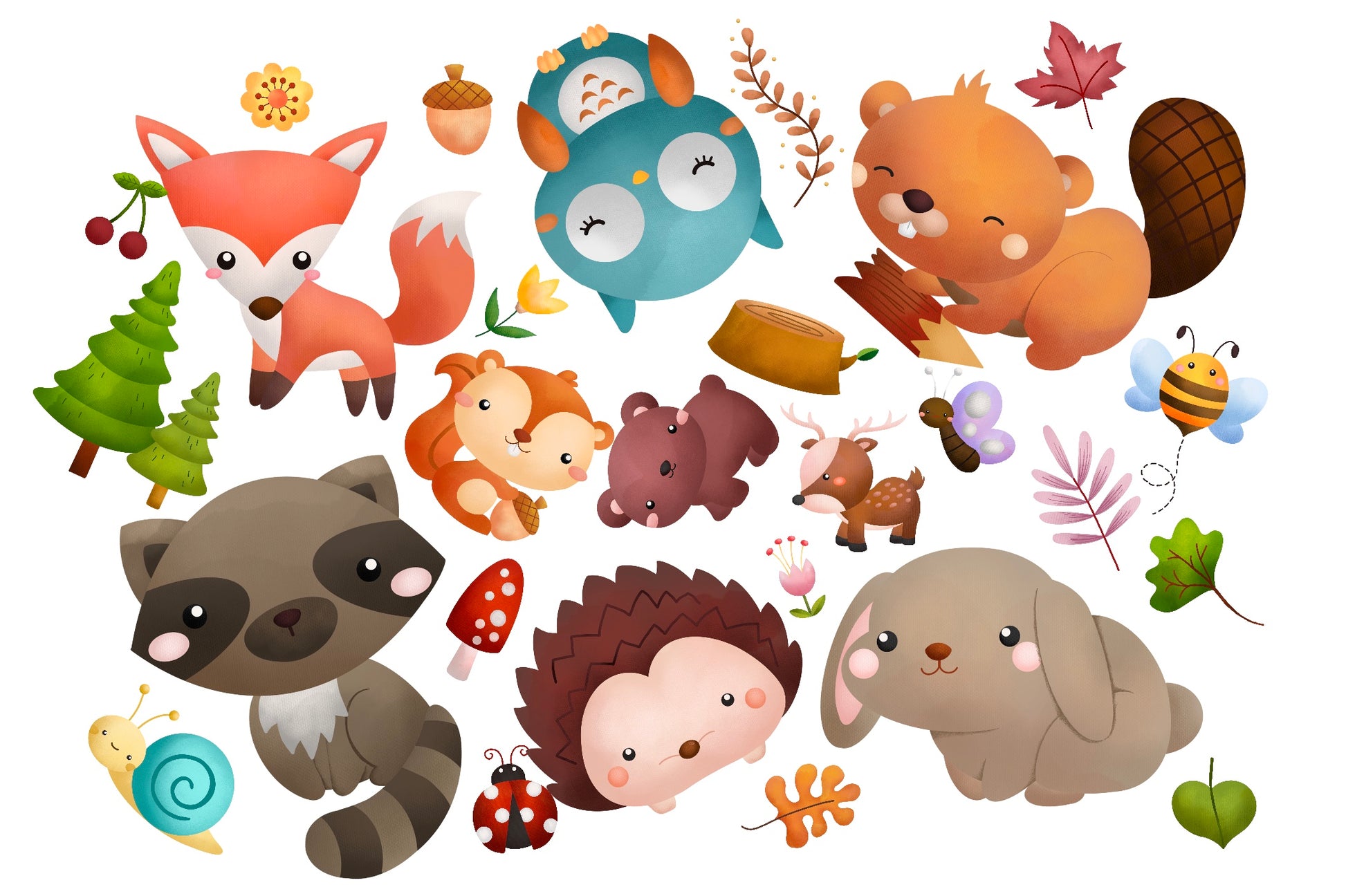 Watercolor Woodland Animals Clipart - Cute Forest Animals